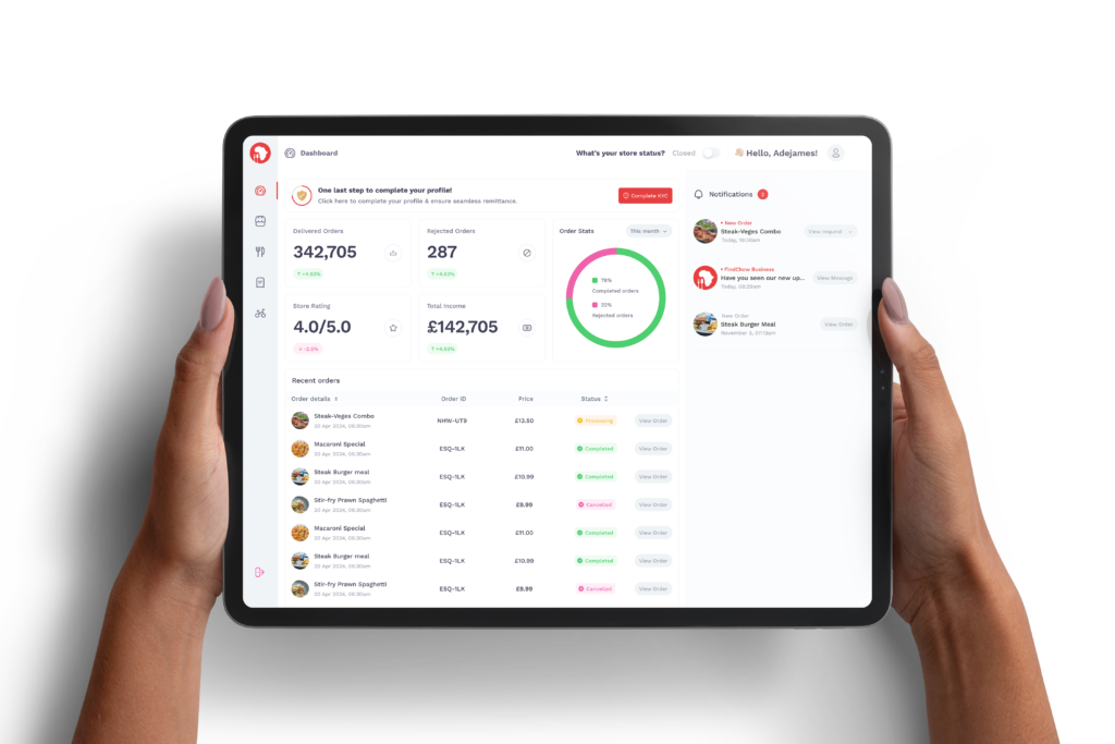 Manage restaurant menu, update availability of meals and other details you want the consumers to see on your restaurant page.